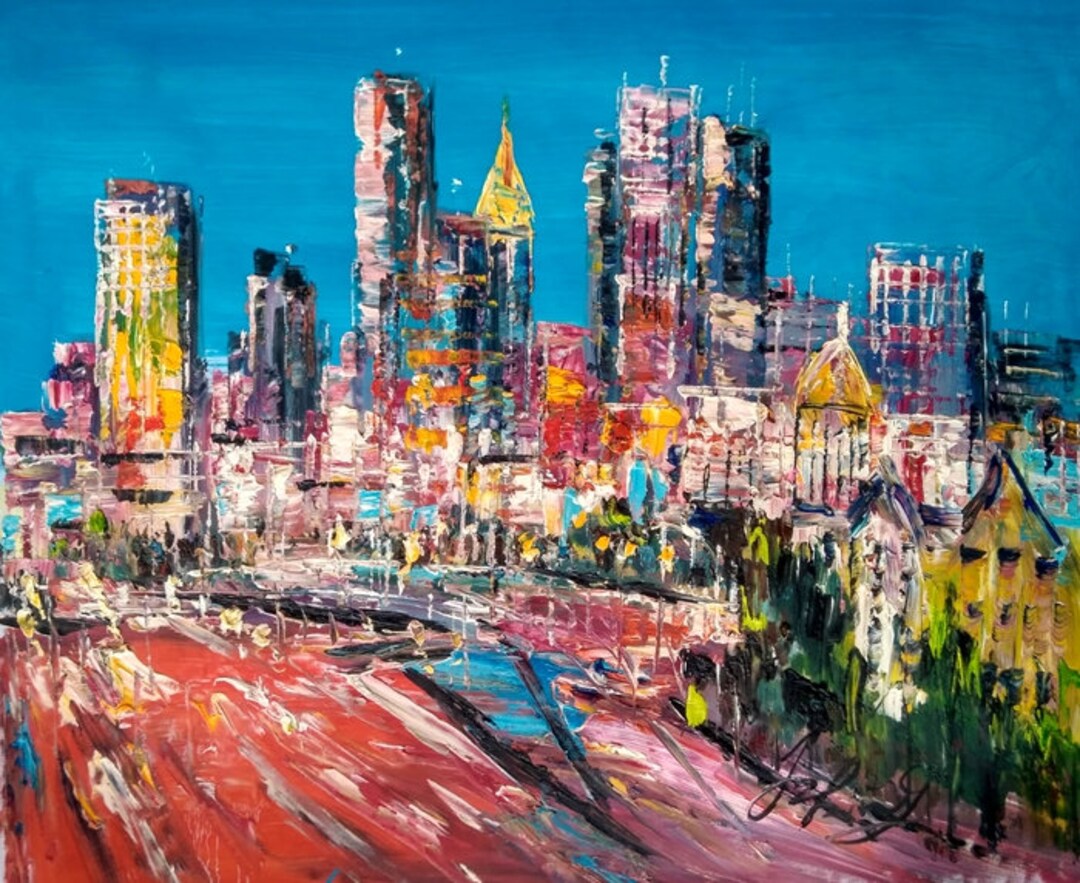 Atlanta Skyline From High Way Ga Pen King A2029 Home Decor Holiday Artwork Texture Painting Dining Wall Art Etsy